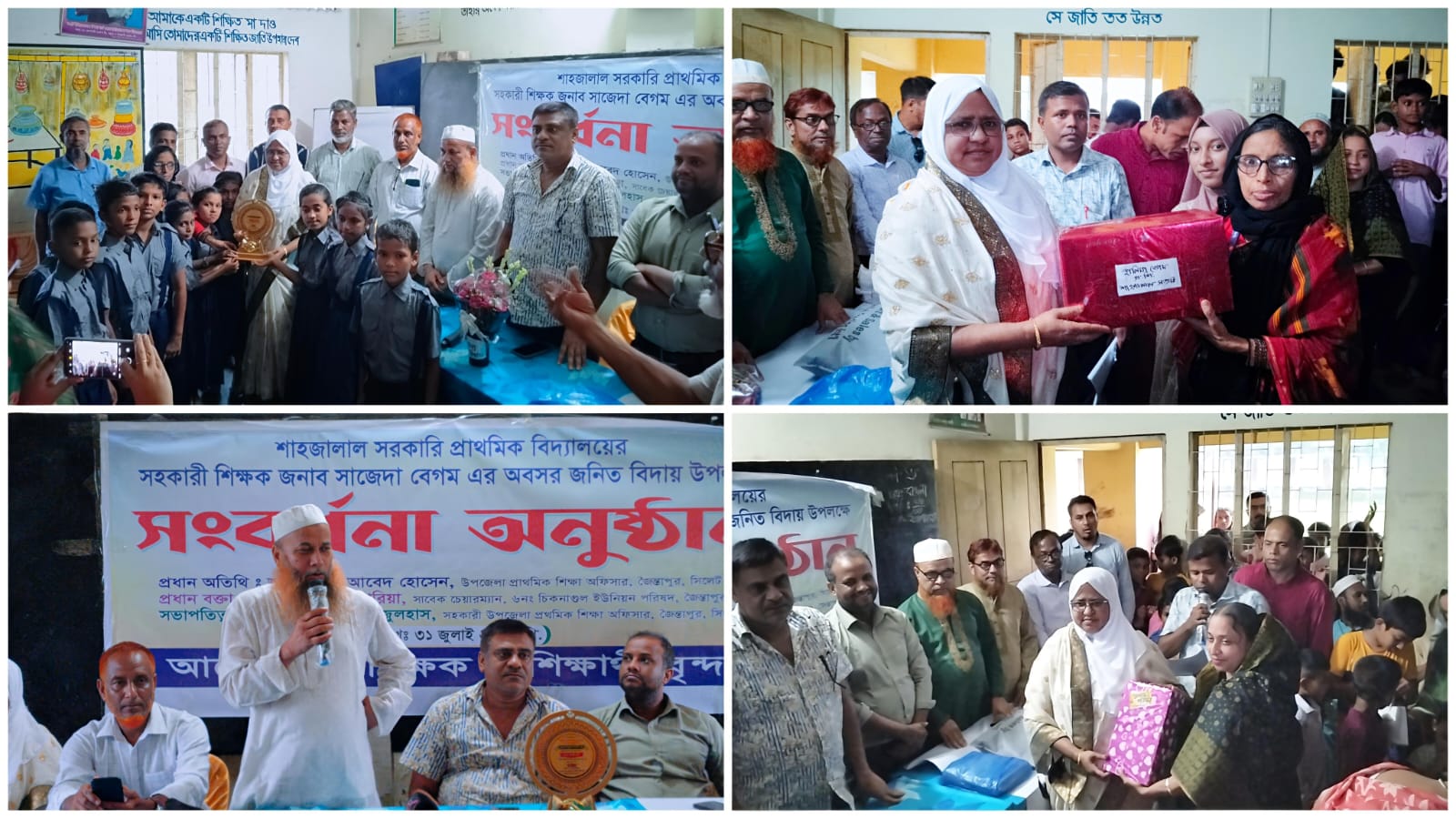 উপজেলার শাহজালাল সরকারি প্রাথমিক বিদ্যালয়ের সহকারী শিক্ষক সাজেদা বেগমের বিদায়ী অনুষ্ঠান উপলক্ষে বৃহস্পতিবার (৩১ জুলাই) দুপুর ২টায় বিদ্যালয়ের হলরুমে নানা আয়োজন করা হয়।