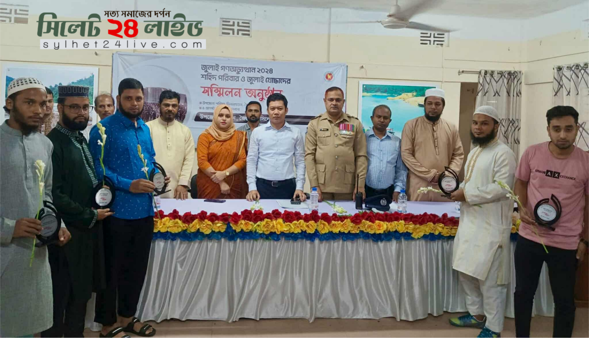 সিলেটের জৈন্তাপুর উপজেলায় ২০২৪ সালের ঐতিহাসিক ‘জুলাই গণঅভ্যুত্থান’-এর বর্ষপূর্তি উপলক্ষে উপজেলা প্রশাসনের আয়োজনে শহীদ পরিবার ও আহত জুলাই যোদ্ধাদের সংবর্ধনা প্রদান করা হয়েছে।