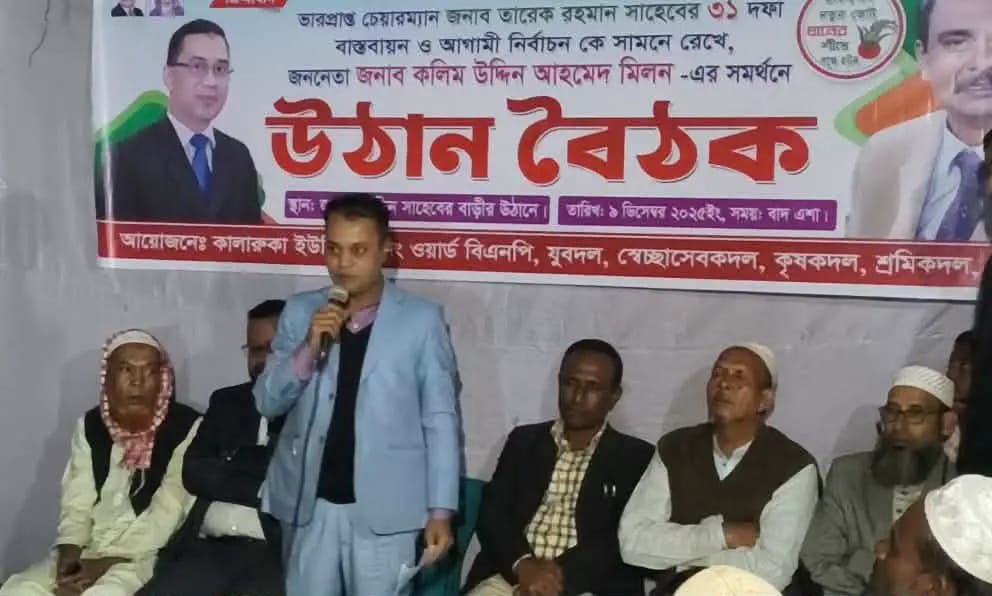 বিএনপির ভারপ্রাপ্ত চেয়ারম্যান জনাব তারেক রহমানের ঘোষিত ৩১ দফা বাস্তবায়নের লক্ষ্যে সুনামগঞ্জ-৫ (ছাতক–দোয়ারাবাজার) আসনে ধানের শীষ প্রতীকের মনোনীত প্রার্থী জননেতা কলিম উদ্দিন আহমদ মিলনকে সমর্থন জানিয়ে কালারুকা ইউনিয়নের ৩ নম্বর ওয়ার্ডের মাধবপুর গ্রামে এক উটান বৈঠক অনুষ্ঠিত হয়েছে।